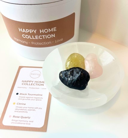 Whether you’re looking to invite positive energy into your space or need the perfect hostess gift, the Happy Home Collection has you covered. This set includes carefully selected stones to shield against negativity, ground your space, and infuse your home with joy, abundance, warmth, and positivity.